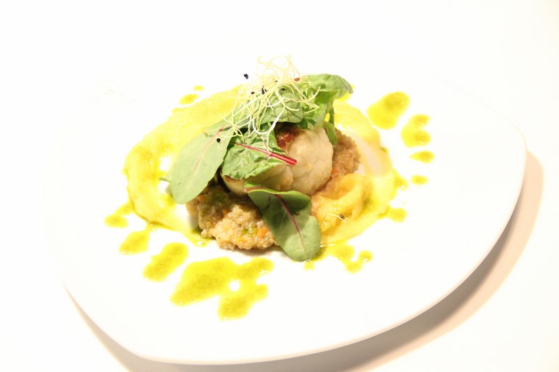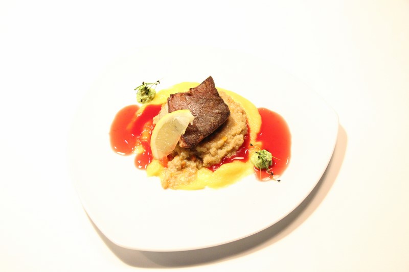 Võiga küpsetatud lillkapsasteik, kinotto, kollase peedi kreemi ja karulauguõliga (T)